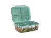 Sej og superpraktisk madkasse fra Dino World. Madkassen er i grågrønne farver og med sejt motiv af to T-Rex dinosaurer på låget, som har smart cliplukning, der er nem at åbne og lukke. Madkassen har desuden tre separate rum til praktisk opdeling af maden. Opvask i hånden anbefales af hensyn til printets holdbarhed. Ikke egnet til mikroovn. Mål: 14,2 x 17,2 x 5,7 cm.
