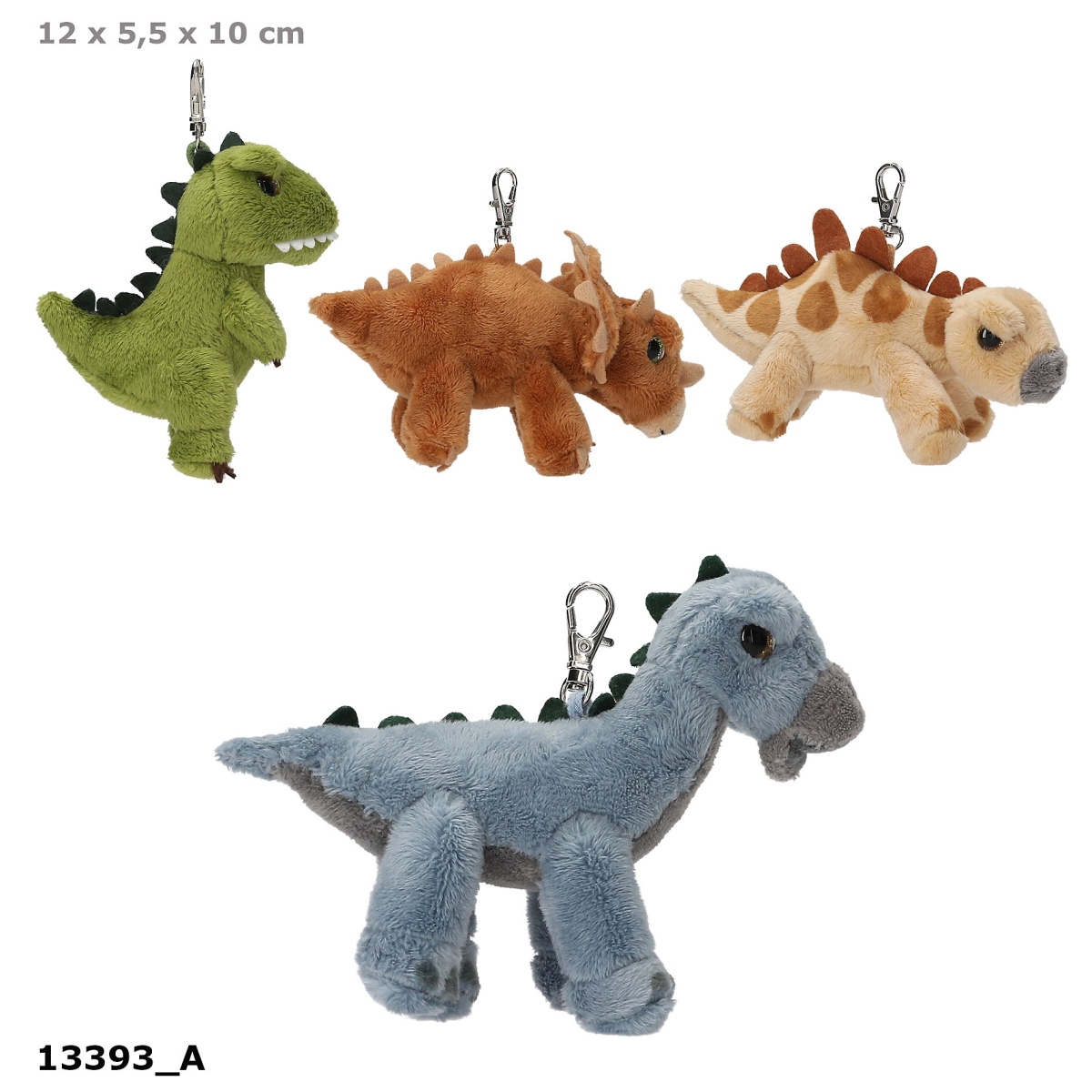 Den lille og bløde men stadig seje og skræmmende dinosaurus plys fra Dino World har praktisk karabinhage, så du kan bruge dem til dine nøgler eller som vedhæng på en taske. Vælg mellem 4 seje dinosaurer: lysebrun Stegosaurus, grøn T-rex, blå Bronchiosaurus og brun Triceratops.