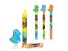 Farverig og sjov highlighter pen fra Dino World med sød dinosaur topfigur. Der findes tre forskellige design og farvevarianter. Hver highglighterpen består af 3 mindre, individuelle, farvede highlighterpenne i forskellige farvekombinationer af orange, blå, gul og grøn. Farverne kan stables overnpå hinanden og udgør tilsammen en hel pen. Kan bruges til overstregning af vigtige notateter eller til at give din tegninger og andre kreative kreationer ekstra farvedetaljer.