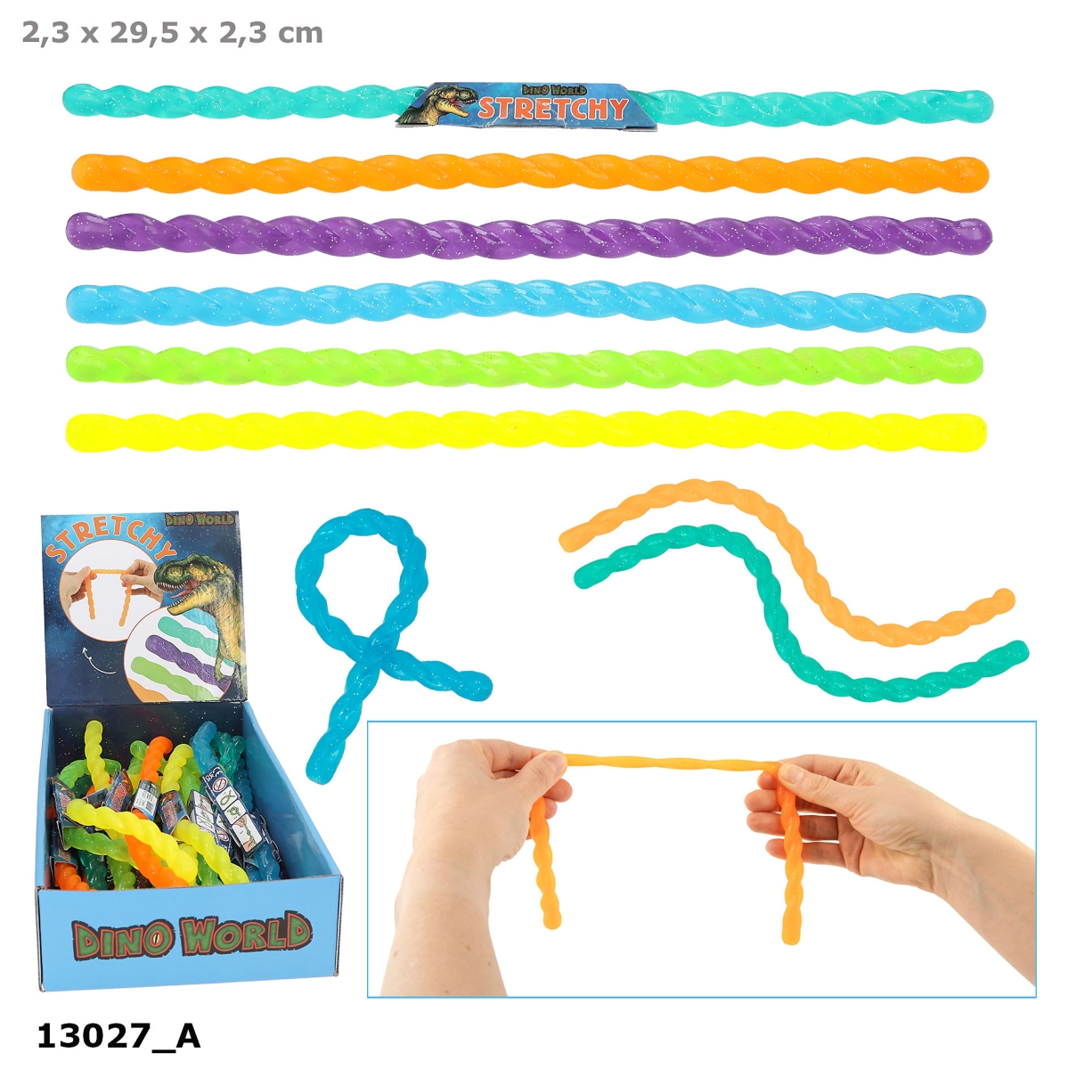 Dino Worlds stretchy fidget er et sjovt tidsfordriv, som på en legende måde reducerer stress. Kan strækkes op til 2 meter. Fås i farverne gul, orange, lysegrøn, grøn, blå og lilla.