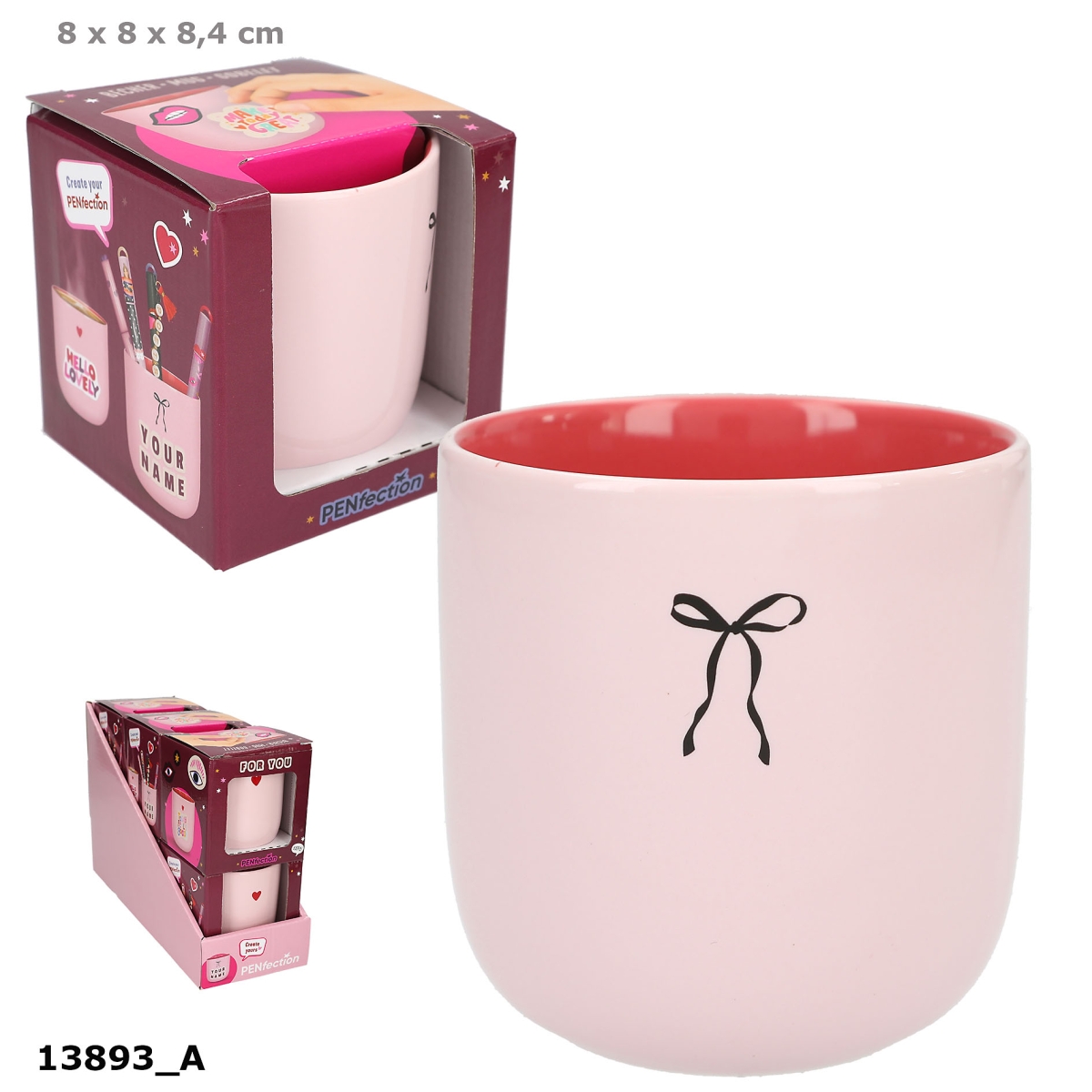 Uanset om det skal bruges til din yndlingsdrik eller være en sød holder til dine blyanter m.m., så er dette porcelænskrus fra PENfection uden hank både stilfuldt og praktisk. Kruset er lyserødt på ydersiden med en sløjfe på den ene side og et hjerte på den anden og pink på indersiden. Kruset, der er fremstillet i porcelæn, rummer 250 ml. Ikke egnet til opvaskemaskine eller mikroovn pga. printet.