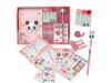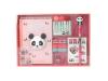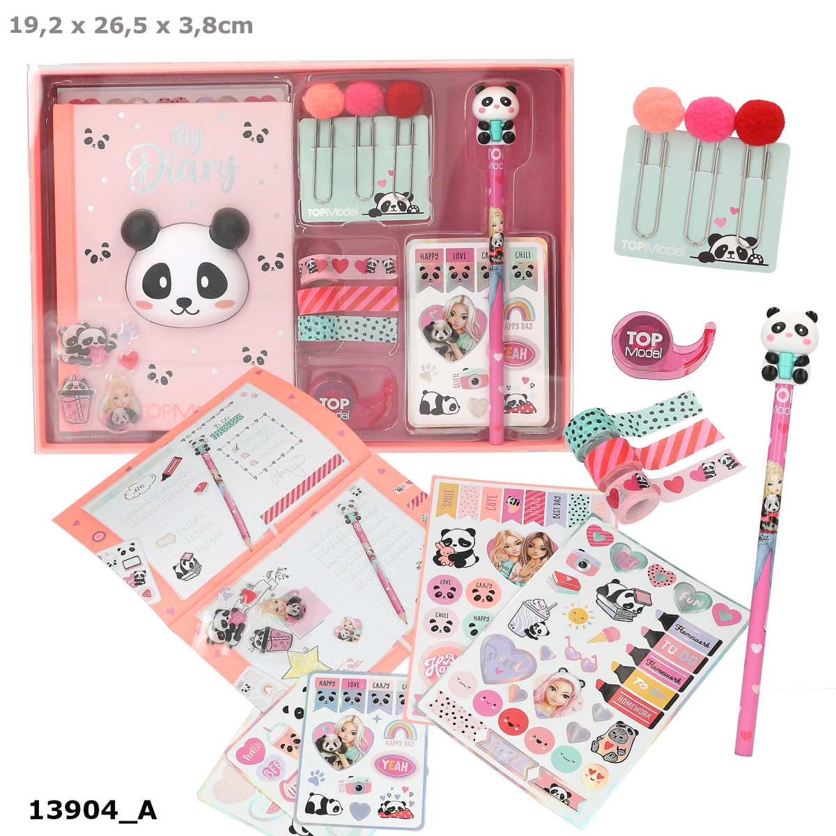 En dagbog, du selv kan designe og personliggøre og dermed selv vælge, hvordan den skal se ud! Create Your Diary sættet fra TOPModel indeholder en notesbog i rosa med prikker og små pandamotiver samt det sejeste blikfang, nemlig pandahovedet der stikker frem i 3D på bogens omslag! Derudover indeholder sættet: 3 store papirclips med pom-poms i forskellige rødlige farver, 1 blyant med en pandafigur på toppen, 1 tapedispenser med 4 mønstrede taperuller samt ark med i alt 97 søde klistermærker i dekorative TOPModel design. Pakket i en fin æske med transparent låg.