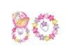 Smykkesættet fra Ylvi består af et armbånd og en ring med masser af store og små stjerner. Inde i hver store stjerne er der en mindre stjerne. Findes i fire forskellige design: transparent/turkis, transparent/pink, transparent/multifarvet og multifarvet/hvid.