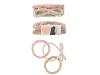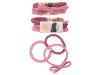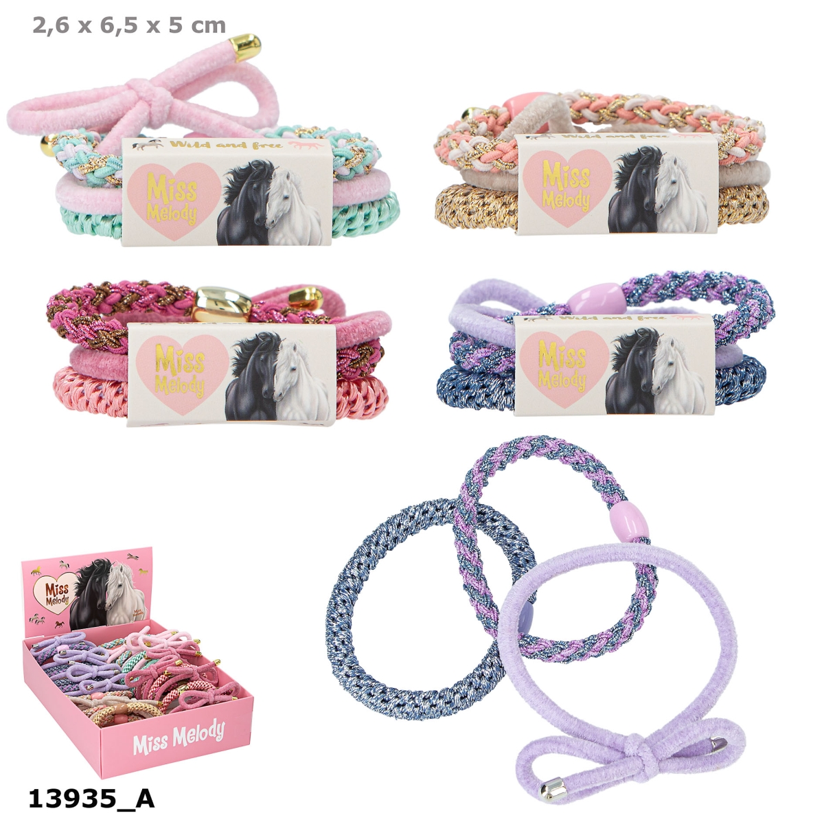 Hårelastikker som ikke bare er praktiske og smarte i håret men også superfine som armbånd. De virkelig fine elastikker sidder virkelig godt og holder på frisuren uden af skade håret. Der er 4 forskellige, farverige sæt af de smukke Miss Melody hårelastikker at vælge imellem i farverne rosa- beige, lyserød-turkis, lilla-blå og rosa-brun. Hvert sæt består af 3 forskellig matchende hårelastikker: en ensfarvet med perle, en flerarvet med perle og en ensfarvet med sløjfe. Brug dem som hårelastikker, eller sæt dem på din arm og mix og match med andre armbånd, for dit helt eget personlige look.
