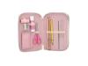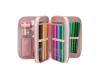 Et virkelig flot og praktisk, trefløjet penalhus fra Miss Melody i lys gul med guld og rosa detaljer og med en smuk, brun hest på forsiden med en applikeret blød, hvid man. Penalhuset er opdelt i tre store rum og er fyldt med alt, hvad man skal bruge til at tegne og skrive med både i skolen og derhjemme som saks, lim, lineal, viskelæder, blyantspidser, blyanter, 18 farveblyanter og farvetuscher.