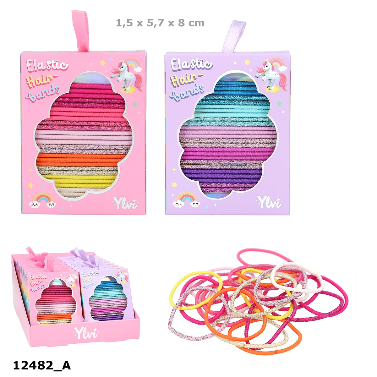 Med dette sæt fra Ylvi får du masser af smukke hårelastikker til at lave fine frisurer. Et sæt består af 25 tynde, hårelastikker i flotte farver, nogle med et glitterlook. Findes i to forskellige farvekombinationer: Et sæt med forskellige nuancer af pink, gul, orange og hvid. Et andet sæt med forskellige nuancer af blå, pink og lilla.