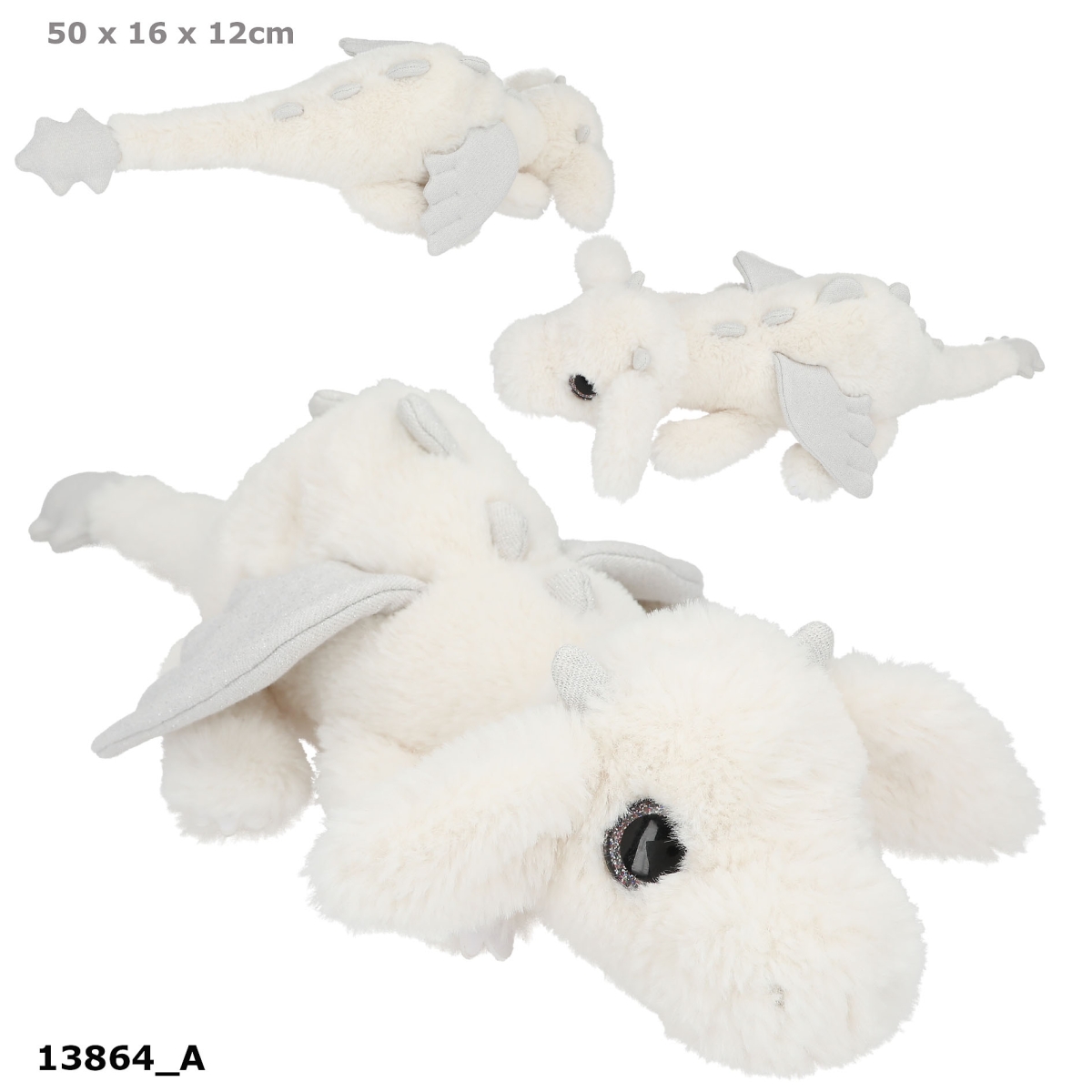 Ihanan pehmeä, valkoinen lohikäärmepehmo kimaltelevilla siivillä ja yksityiskohdilla. Materiaali 100 % polyesteri, pituus 50 cm.