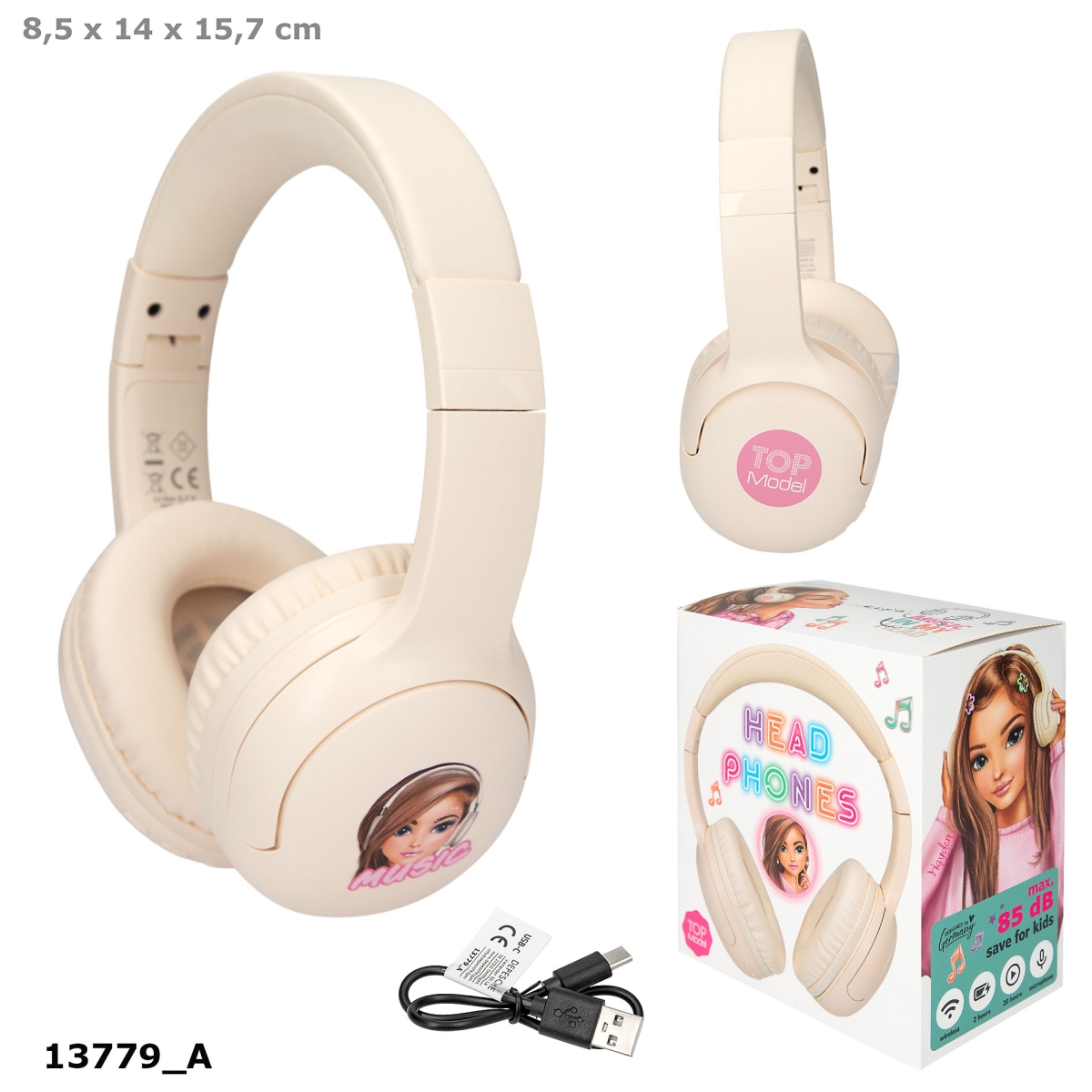 Nyt favorittmusikken din og podkaster med disse trådløse, kremfargede hodetelefonene med integrert mikrofon for telefonsamtaler samt et kult TOPModel-motiv. De kan kobles til alle standardenheter via trådløs tilkobling. Rekkevidden er opptil 10 meter, og spilletiden er ca. 20 timer (ved 50 % volum). USB-C-tilkobling (ladekabel følger med); ladetid: ca. 2 timer.