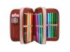Flott trippelpennal med et stort modell motiv med to hunder og en katt på fremsiden. Baksiden og sidene er fylt med motiv av søte små katter og hunder. På glidelåsen henger tre fargerike pom-pomer.´Inneholder tre seperate rom fylt med alt man behøver i et pennal: 18 fargeblyanter og tusjer, 2 blyanter, blyantspisser, viskelær, linjal, saks, limstift og en liten borrelåslomme. Perfekt å ha med på reiser, til skolen eller hjemme.