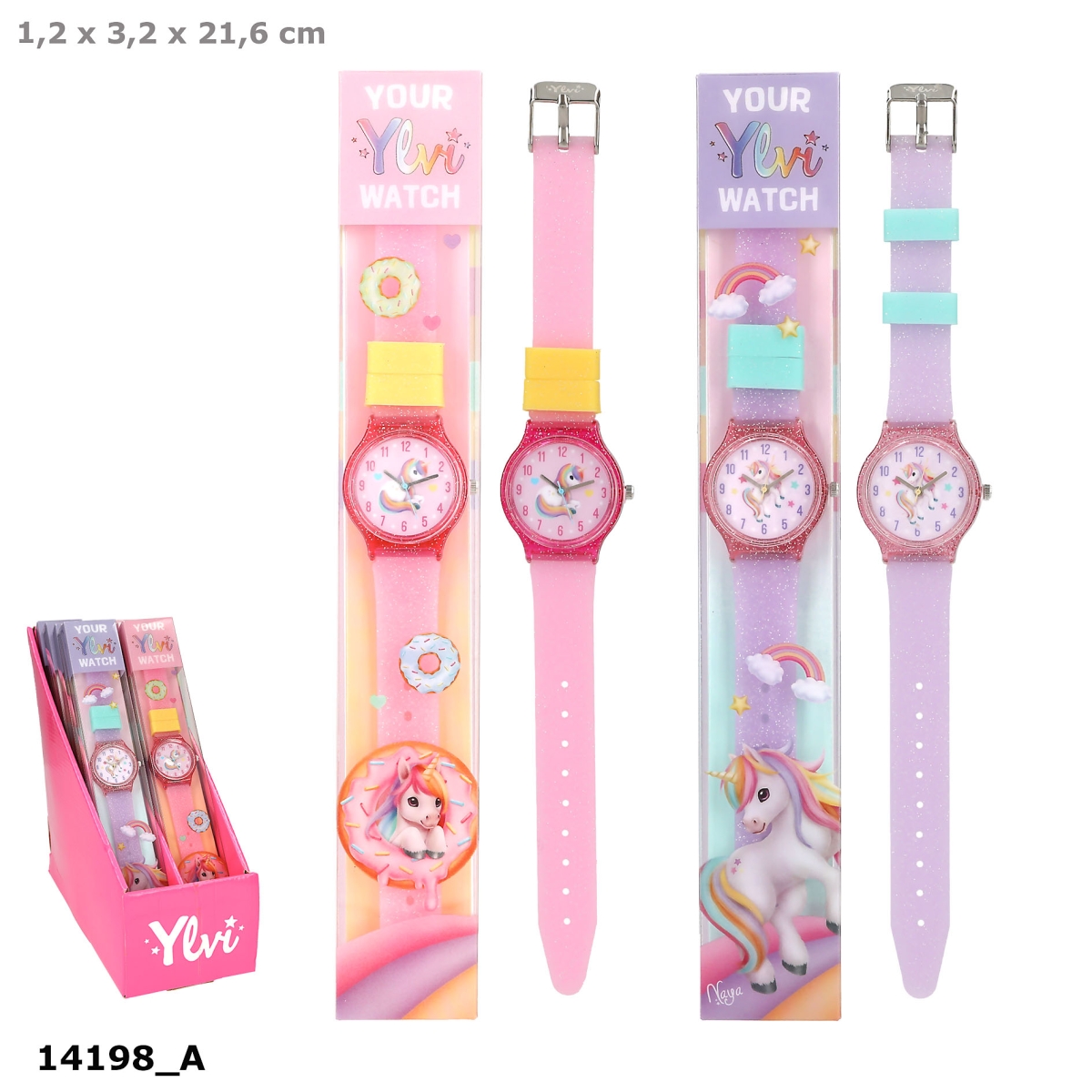 Det er enhjørning-tid! Disse Glitter-armbåndsurene i silikon fra Ylvi er ikke bare superfine; de er også sprutsikre. Finnes i rosa og lilla. Et knappcellebatteri (SR626SW) er inkludert.